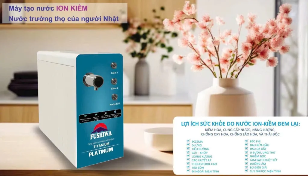 - Trung hòa Axit Dư Thừa: Nước ion kiềm (pH 8.5 – 9.5) có tính kiềm tự nhiên như rau xanh, giúp cân bằng độ pH cơ thể. Uống nước ion kiềm mỗi ngày giúp thanh lọc cơ thể, hỗ trợ tiêu hóa, giảm các triệu chứng trào ngược dạ dày hay ợ nóng mà phụ nữ văn phòng thường gặp phải. (Thể hiện E-E-A-T: Expertise).