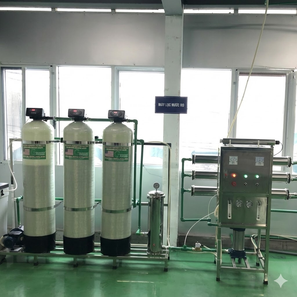 Hệ thống bắt đầu với bộ 3 cột lọc thô composite cao cấp, loại bỏ các tạp chất lớn như bùn đất, cặn lơ lửng, rỉ sét từ nguồn nước ban đầu. Công đoạn này cực kỳ quan trọng, bảo vệ các màng lọc tinh vi ở giai đoạn sau, kéo dài tuổi thọ toàn bộ hệ thống và giảm chi phí bảo trì.