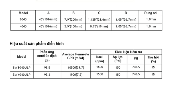 Giảm áp suất tối đa cho từng phần tử………………… 15psi (0.1Mpa)