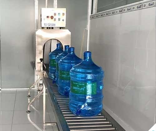 Bình sản phẩm sau khi được dán nhãn sẽ được đưa vào máy. Dưới tác dụng của hơi nước nóng, màng co sẽ co lại và ôm sát sản phẩm. Quá trình này diễn ra nhanh chóng và tự động.