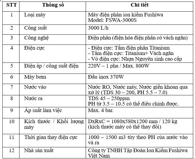 – Công suất vượt trội: Với công suất lên đến 3000L/H, Fushiwa FSWA3000S đáp ứng nhu cầu sử dụng nước kiềm liên tục của các nhà máy, xí nghiệp, bệnh viện, trường học, khách sạn,…